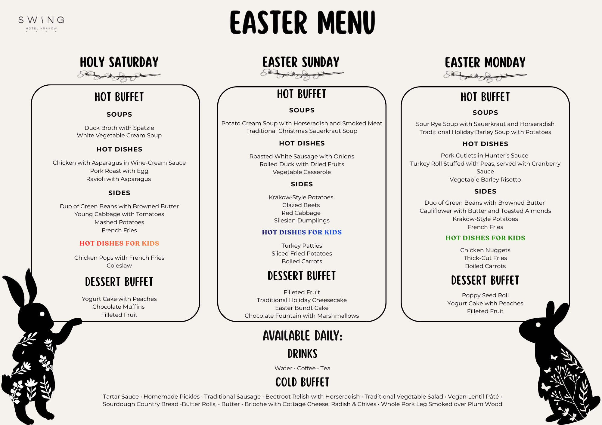 Festive meals are the heart of Easter. At our Quickstep Restaurant, we invite you to ceremonial holiday dinners where traditional flavors meet the variety and abundance of the festive table.