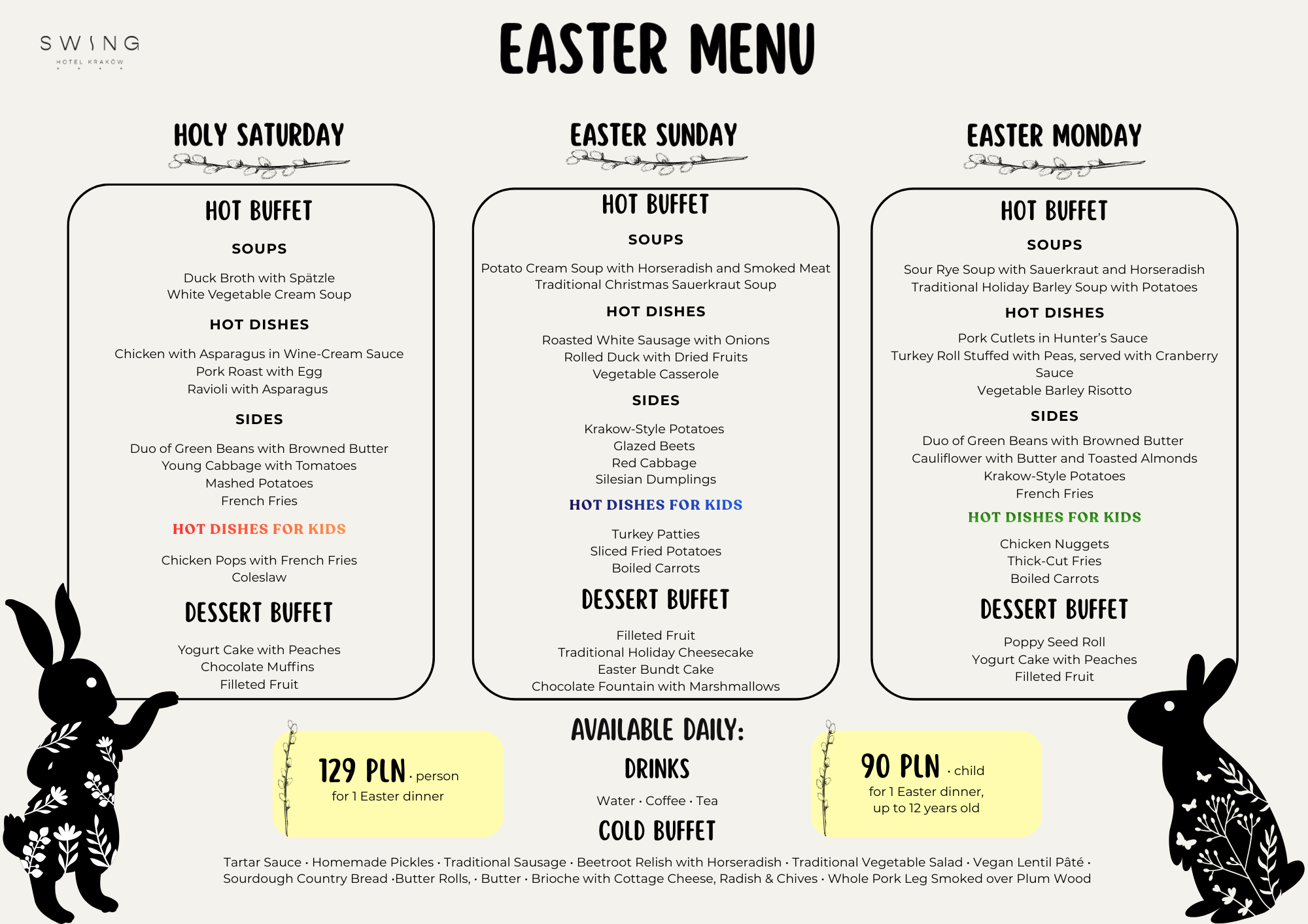 - 90 PLN per child up to 12 years old (for one festive Easter dinner)