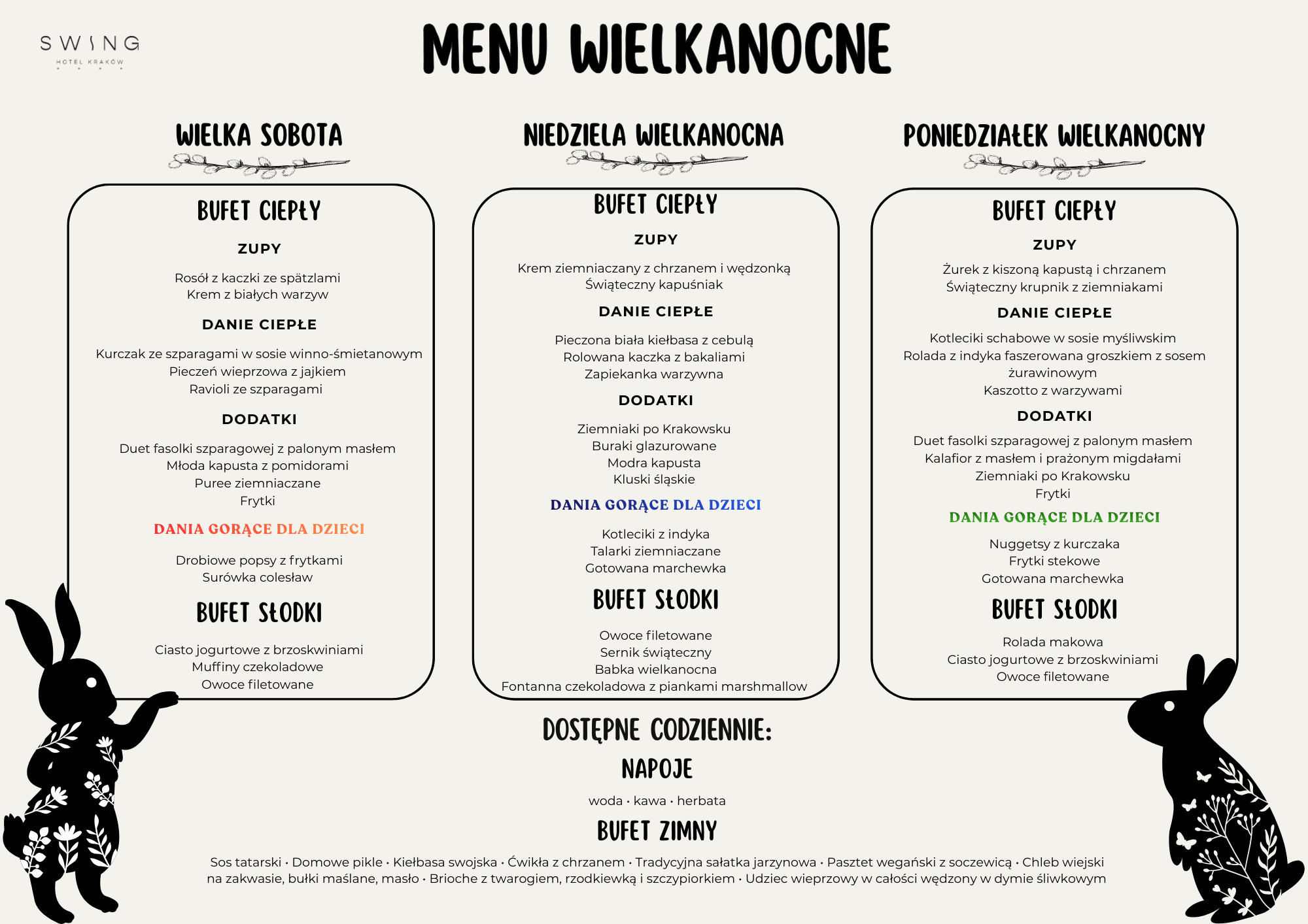 - świąteczne obiadokolacje w dniach 4-6 kwietnia 2026
