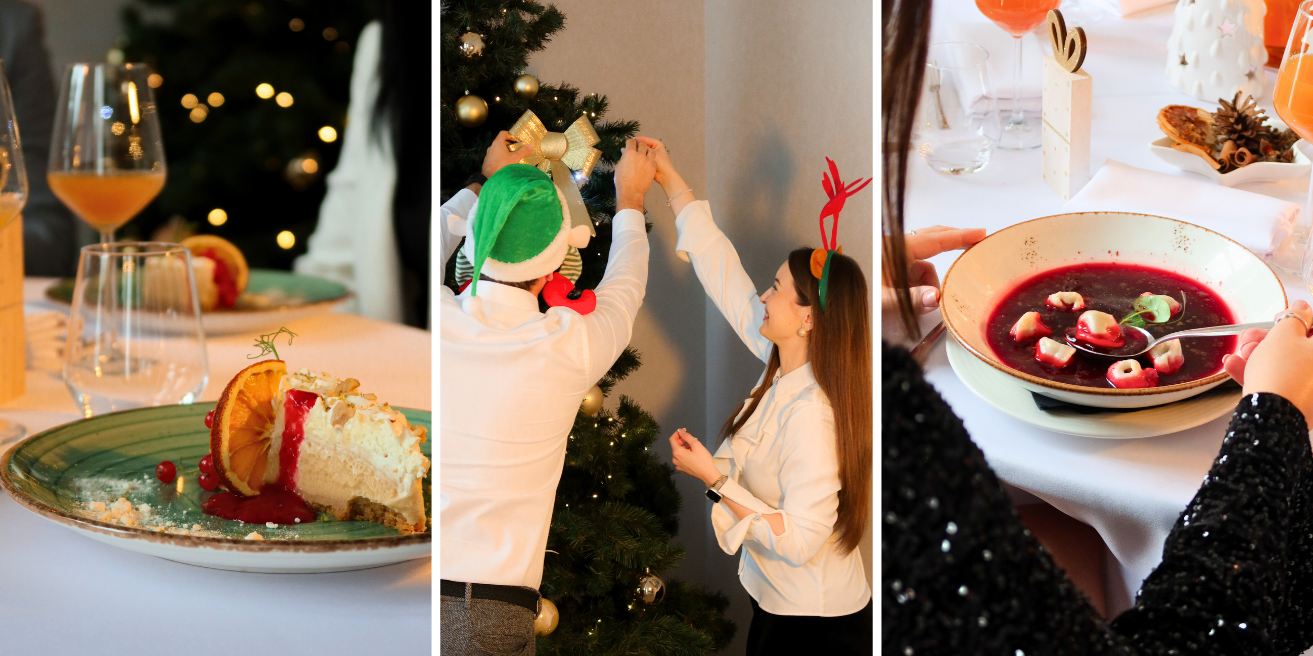 Każdego dnia, przygotowaliśmy inne, świąteczne menu, które łączy tradycyjne smaki z nowoczesną formą podania. To doskonała propozycja dla tych, którzy pragną spędzić czas z bliskimi przy wyśmienitym jedzeniu, w ciepłym, rodzinnym nastroju i eleganckim otoczeniu.
