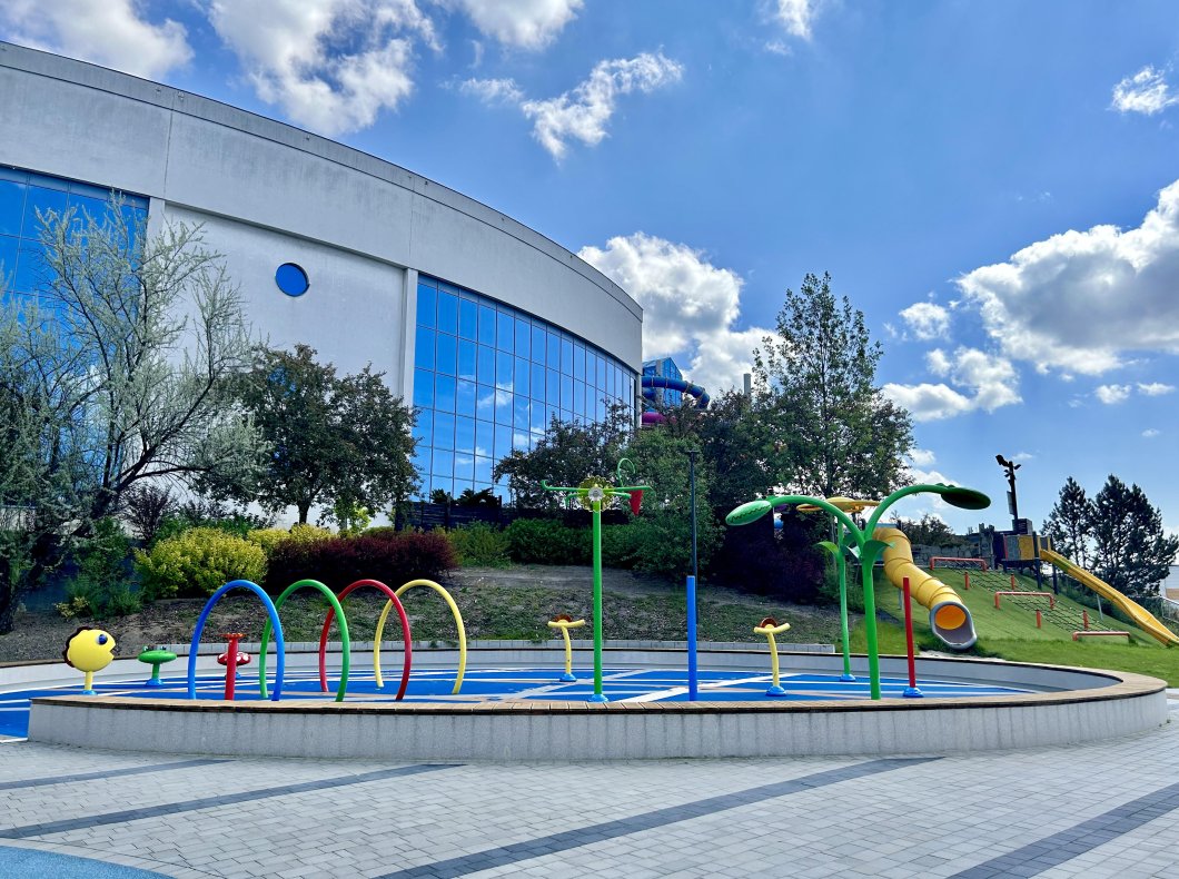 Hala basenowa z kompleksem trzech niecek wodnych i lądowisk o łącznej powierzchni ponad 2000 m2 z pełną gamą atrakcji takich jak brodzik dla dzieci z Wyspą Piratów, 4 duże zjeżdżalnie zewnętrzne i wewnętrzna zjeżdżalnia pontonowa Mamba, bicze wodne, stacje hydromasaży oraz leżanki, jacuzzi z wodą solankową, rwąca rzeka, ścianki wspinaczkowe, miejsca do sportów wodnych i tory do pływania. Więcej informacji na temat Parku Wodnego dostępnych jest tutaj.